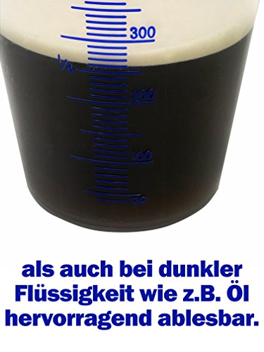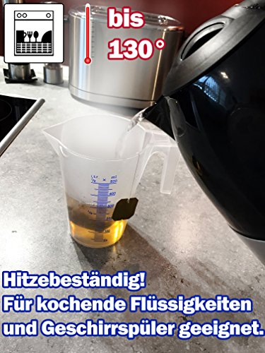Die Meßbecher sind aus unzerbrechlichem Polypropylen und beständig gegen Säuren, Öl, etc. und Hitze!