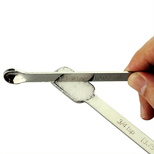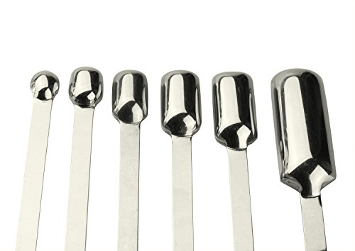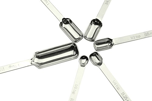Wahrscheinlich haben Sie bereits ein Set von Messlöffeln in Ihrer Küche, bei denen durch die häufige Benutzung die Anzeigen abgenutzt sind oder Sie haben über die Jahre einige der Löffel verloren. Das GAINWELL Set aus 6 schmalen Löffel ist speziell entwickelt worden, um auch in schwer zugängliche Behälter zu gelangen. Somit verlieren Sie keine Zeit beim Backen und Kochen!