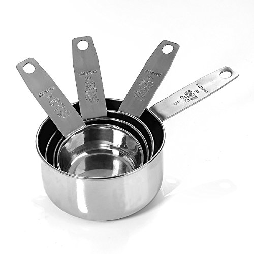 Mit vier Eelstahl-Cups (¼, ⅓, ½, 1 Cup), fünf 304 Edelstahl Löffel (1/8, ¼, ½, 1 TL, 1 EL), Metall Nesting Ring und ein Maß Äquivalente, Sie immer Haben die perfekten Möglichkeiten, alles zu messen.